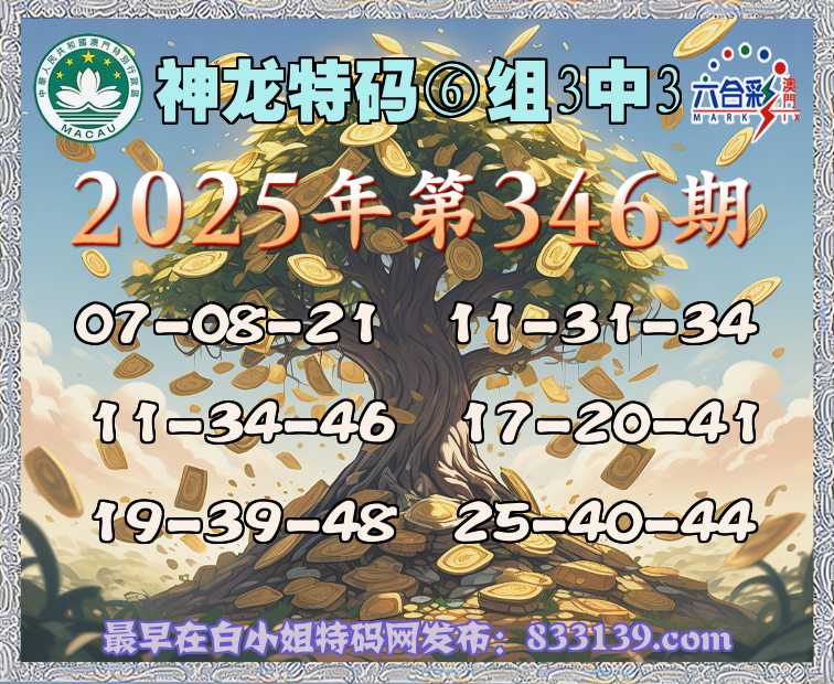 346期:《神龙特码》 ⑥组3中3